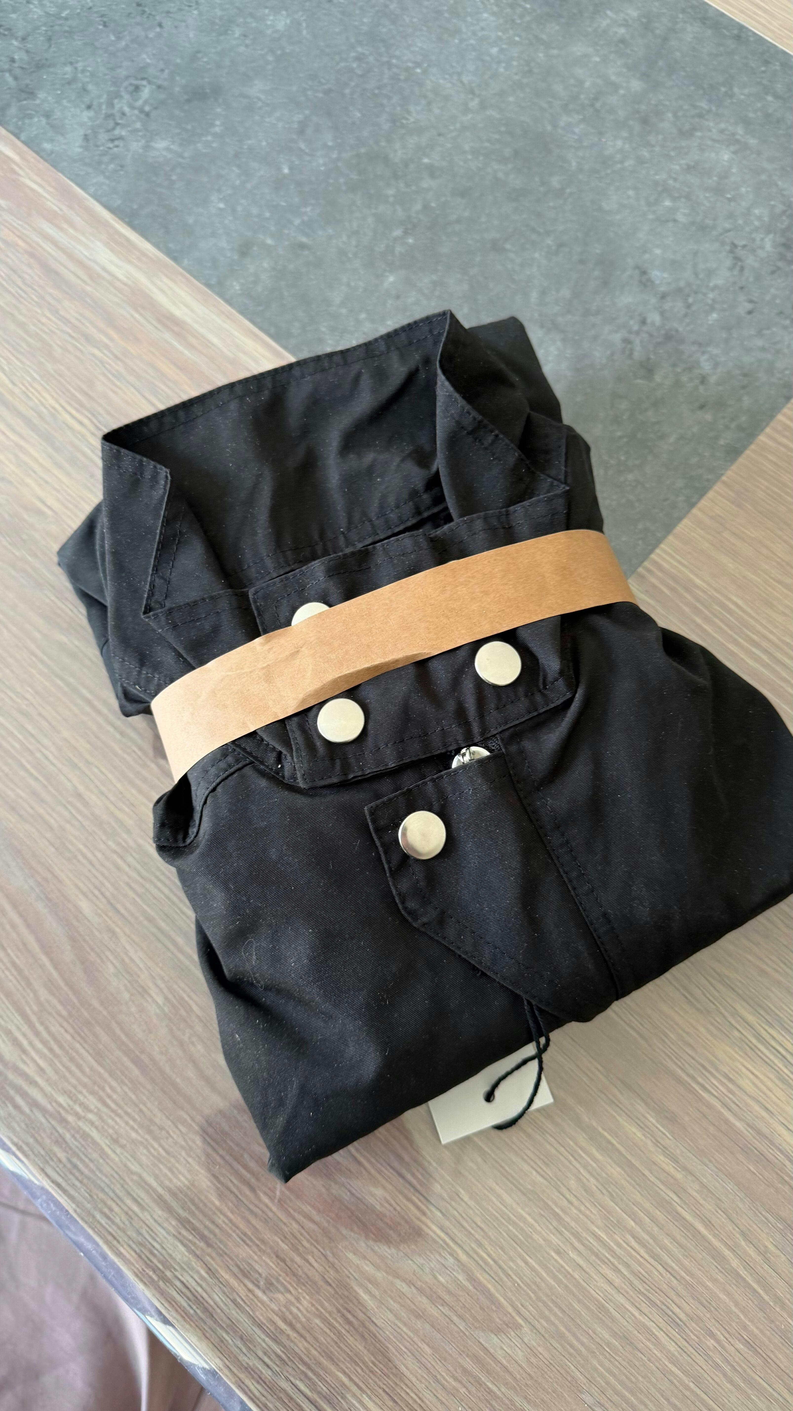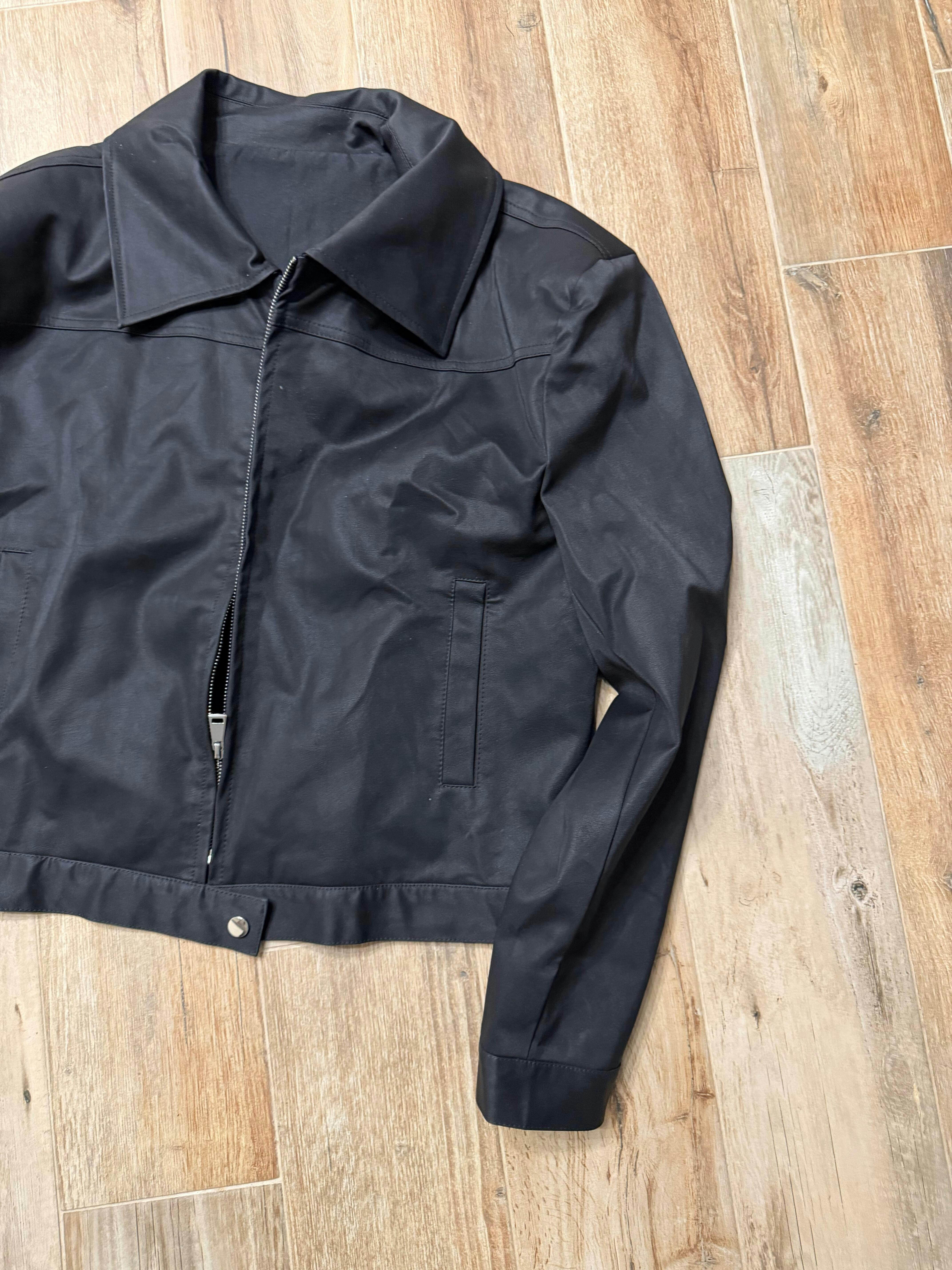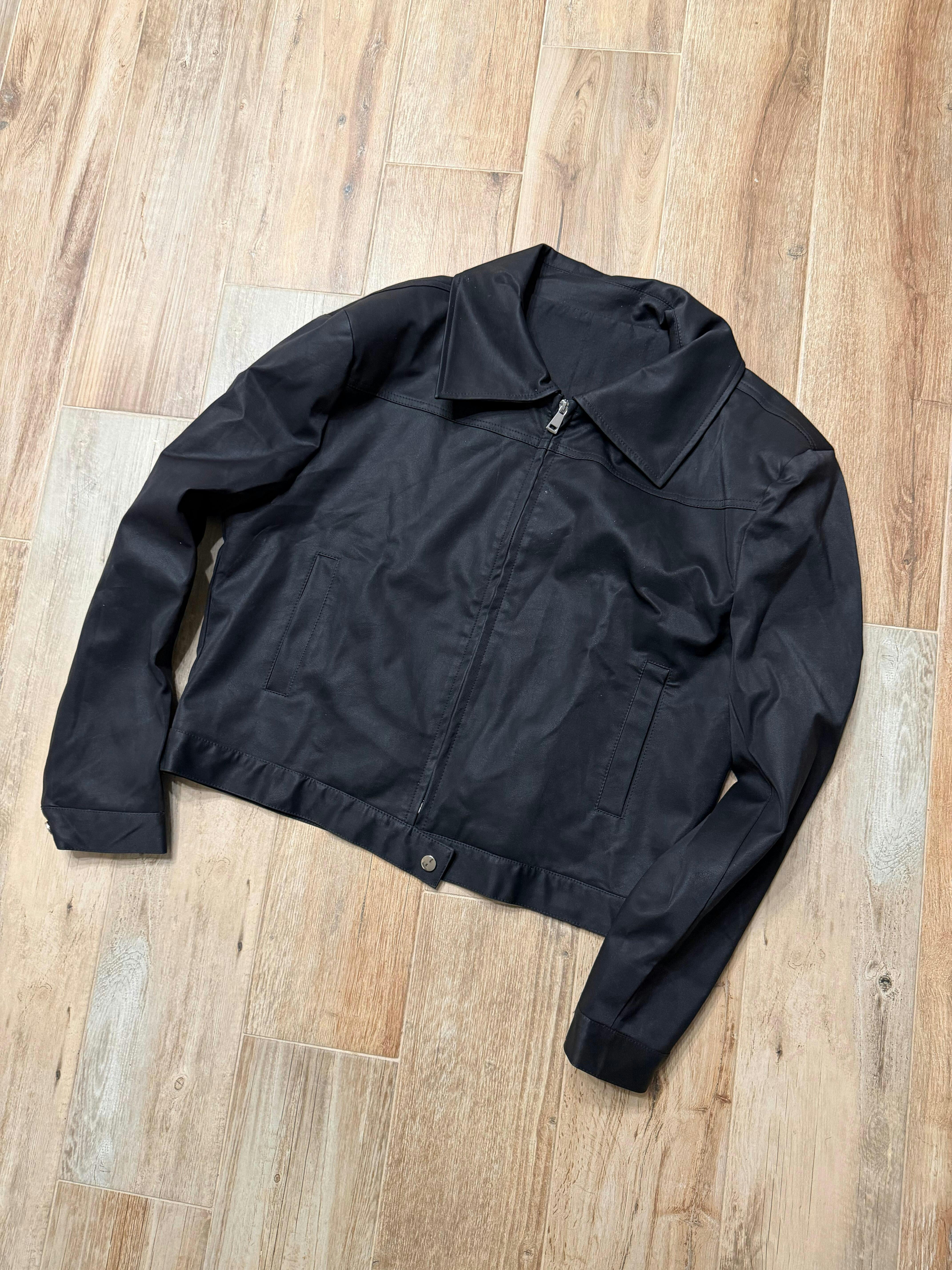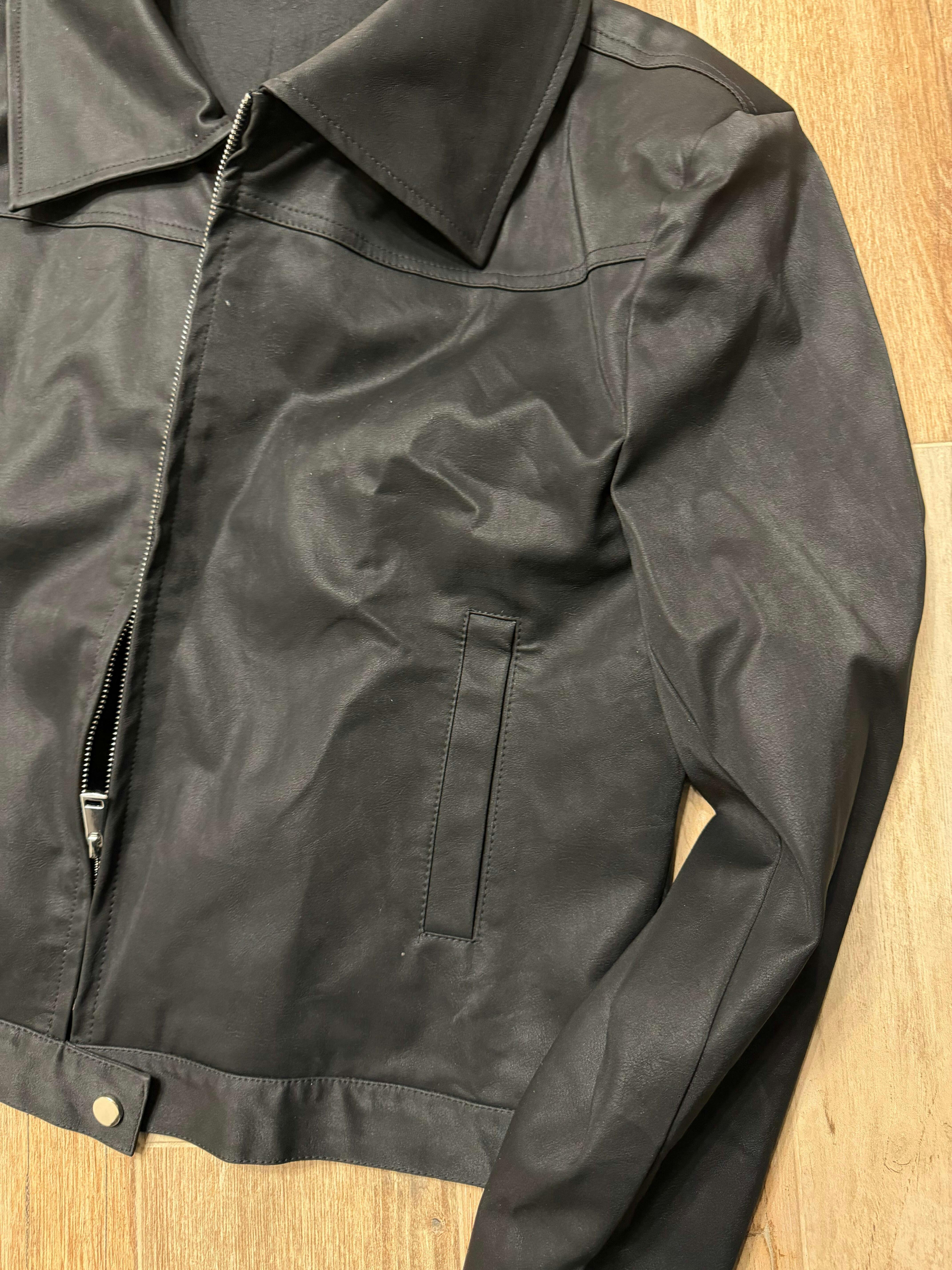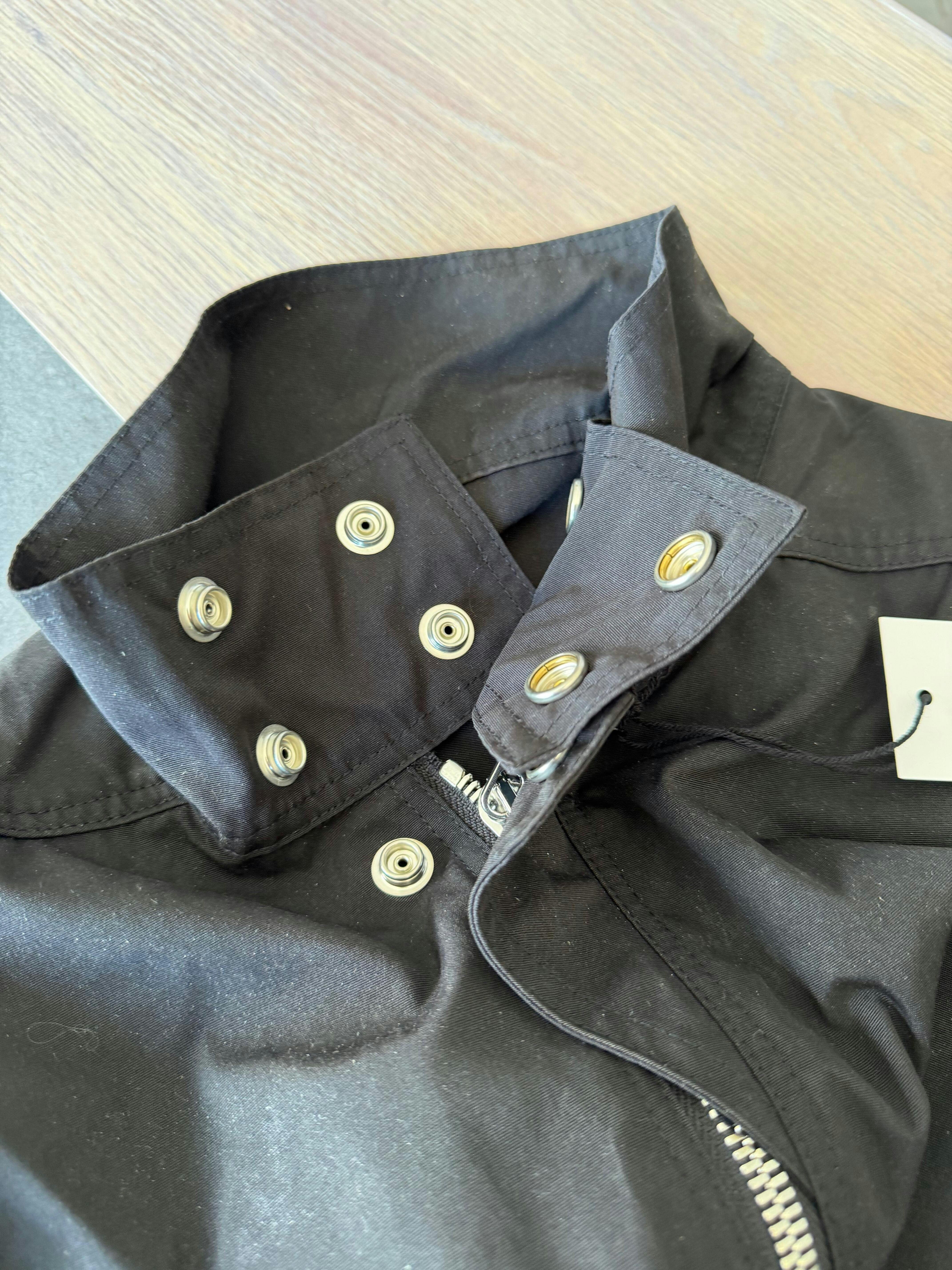 Really happy with this jacket. The fit is clean and slightly cropped which I love, the fabric feels durable and the details on the collar make it stand out