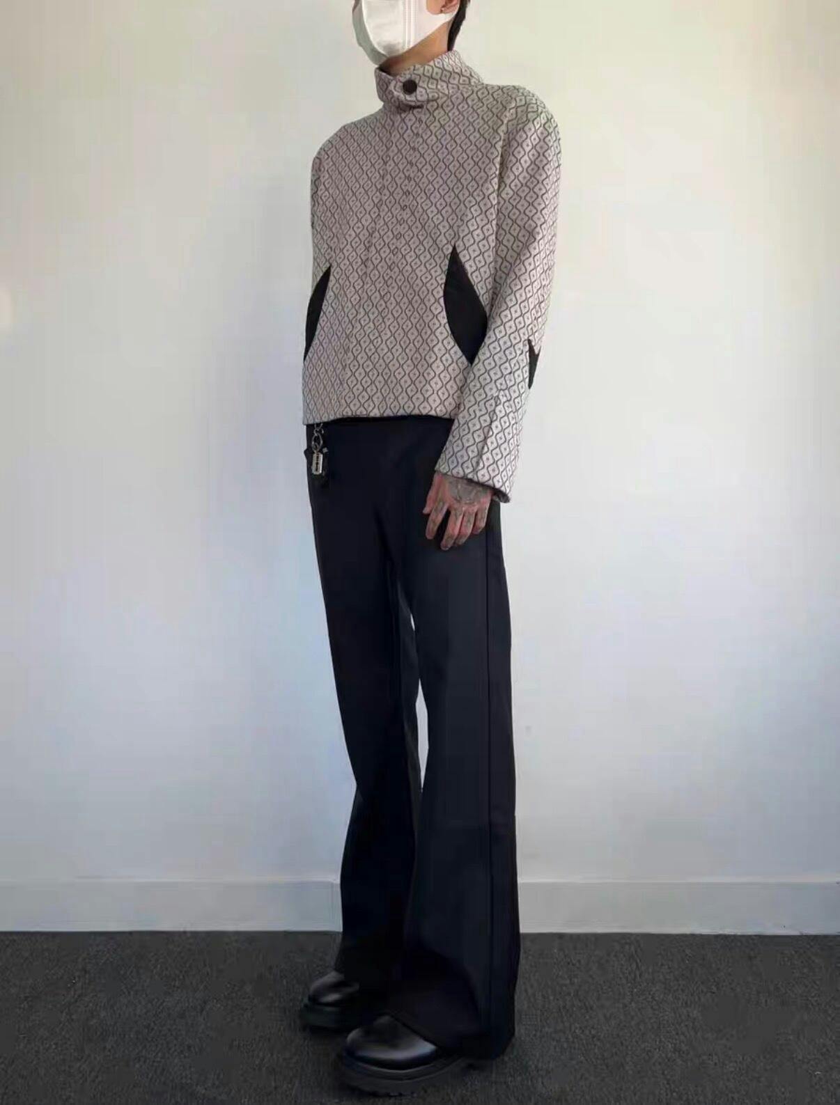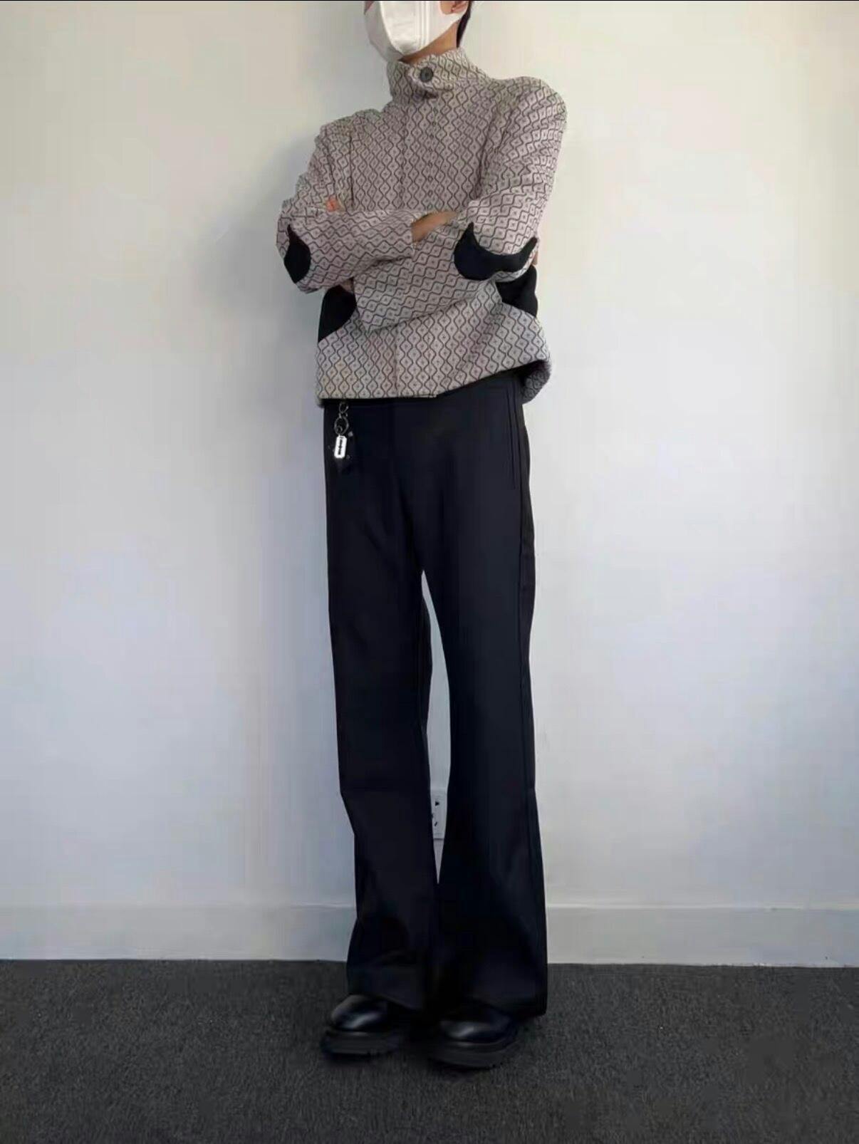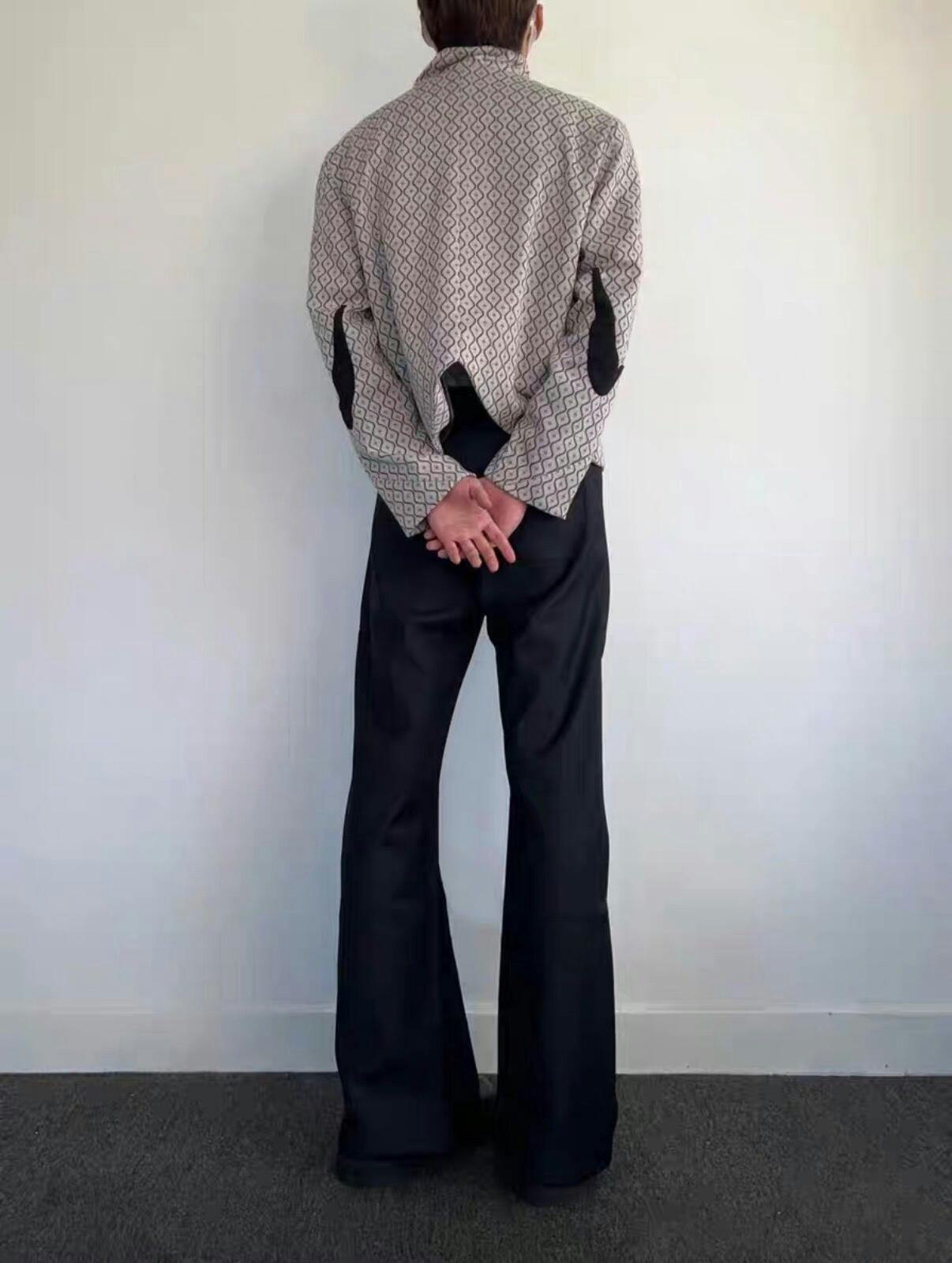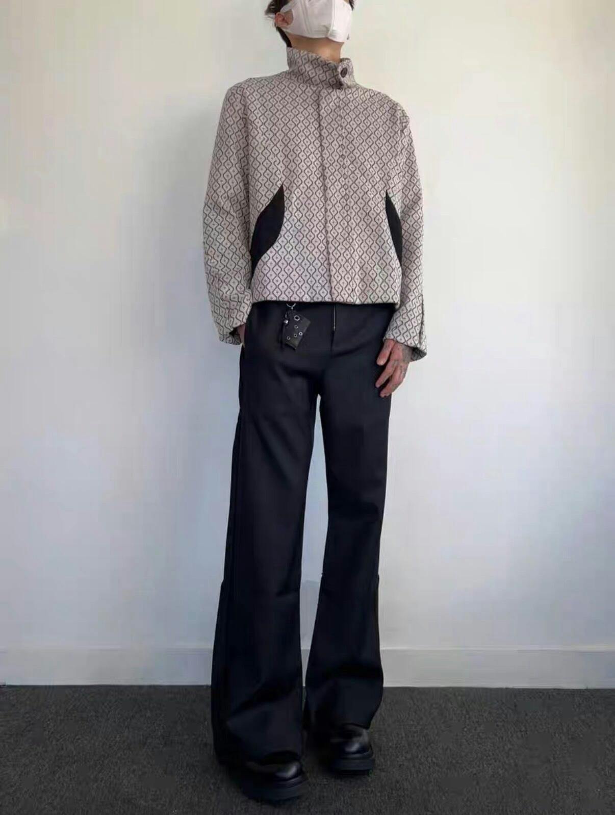 This black structured jacket reinterprets a classic cropped form through minimal construction and precision detailing. Cut to create balance between rigid structure and fluid proportion, it offers a quiet yet distinctive presence.